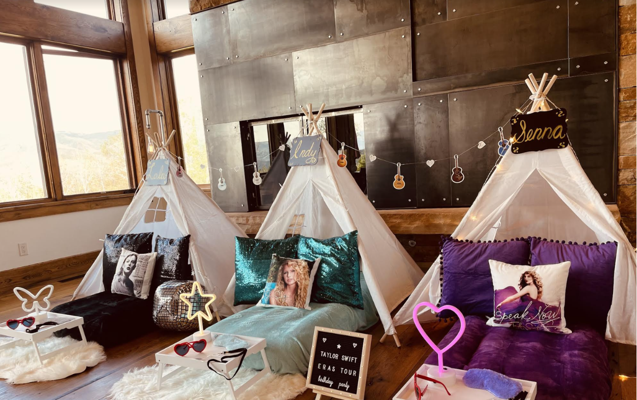 Calling all Swifties! Embark on a musical journal through the iconic eras of Taylor Swift with our exclusive slumber party set, thoughtfully designed to capture the essence of Taylor Swift’s albums. This set includes tents for each of the following albums: Taylor Swift, Speak Now, Lover, 1989, Reputation, and Red.